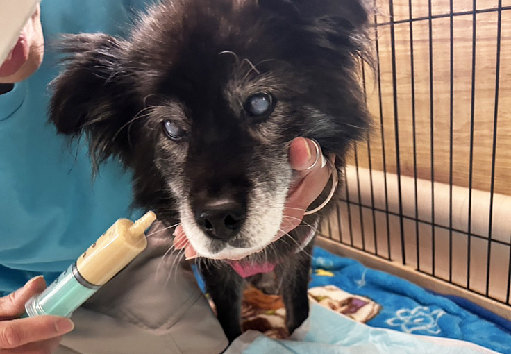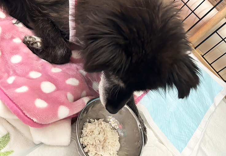 まだまだ食べムラがあり、食べてほしい量には届きませんが、毎日の点滴で脱水等を軽減しながら、トロトロにした流動食をシリンジで食べたせてあげています。