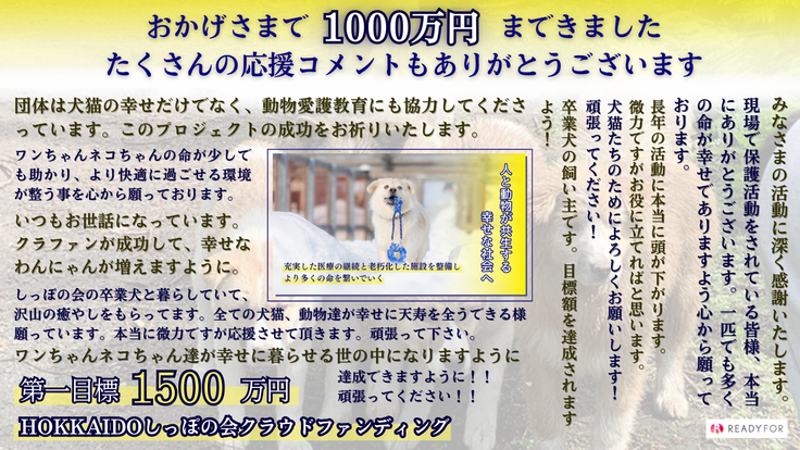 1000万円を突破しました!あたたかいご寄付と応援コメントをありがとうございます!