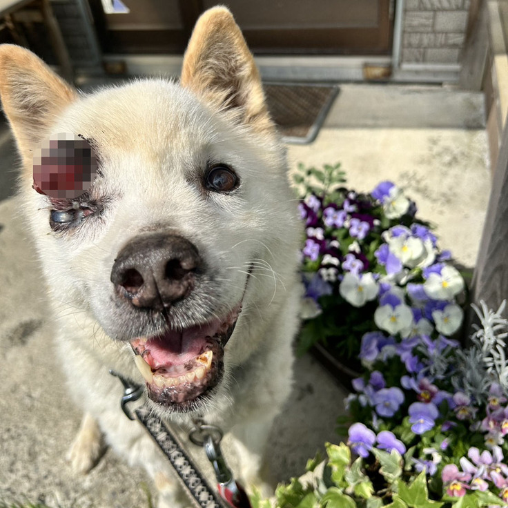 また、右目は膨れ上がった腫瘍が覆いかぶさり、左目の方まで腫瘍の膨らみが迫ってきています。