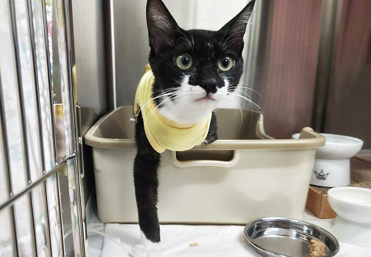 リッコは、腎臓内や尿管に石のようなものが詰まって腎臓が圧迫され、左側の腎臓は尿管が通っていましたが、右側の腎臓は詰まっていたため、命の危険があり尿管切除の緊急手術を行いました。