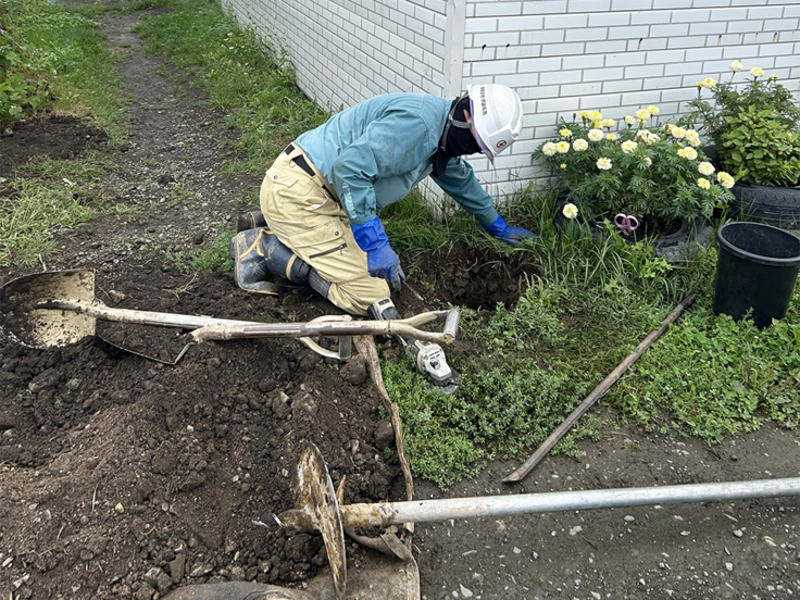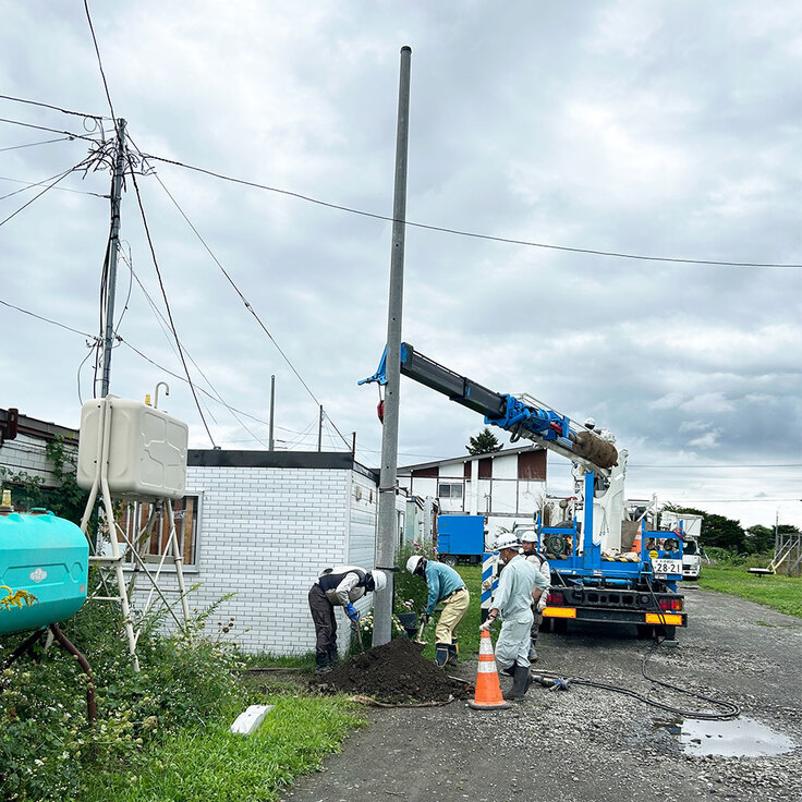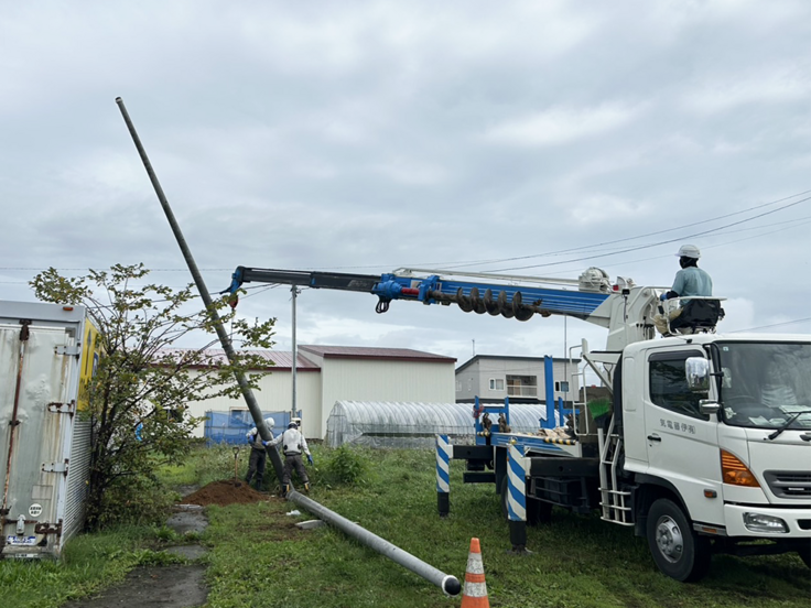 当会の施設は、元々豚舎の跡地だったこともあって、その名残で地中にはコンクリートが埋まっており、電柱の建設には大変な苦労がありました。