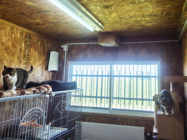 この電気工事により、ストーブ・ヒーター・エアコンの増設が可能となり、犬猫たちが寒さや暑さに耐えることなく、快適に過ごせる環境が整います。