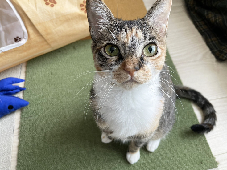 リッコは、長沼町内の某施設に住み着いた多頭野良の卒業猫のアタリが生んだ子で、過酷な環境から2024年8月に保護した推定1歳の女の子です🐈