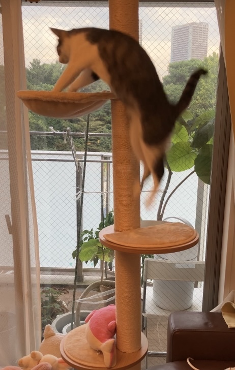 ▲約半年ぶりにキャットタワーに飛び乗るシラス