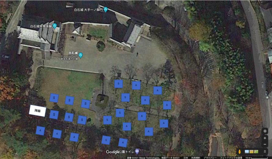 お城を目の前で眺めながら一夜を過ごしたい方は「Sエリア」、