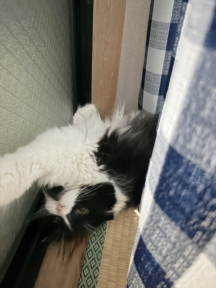 だいたいいるのはカーテンと窓の間です。