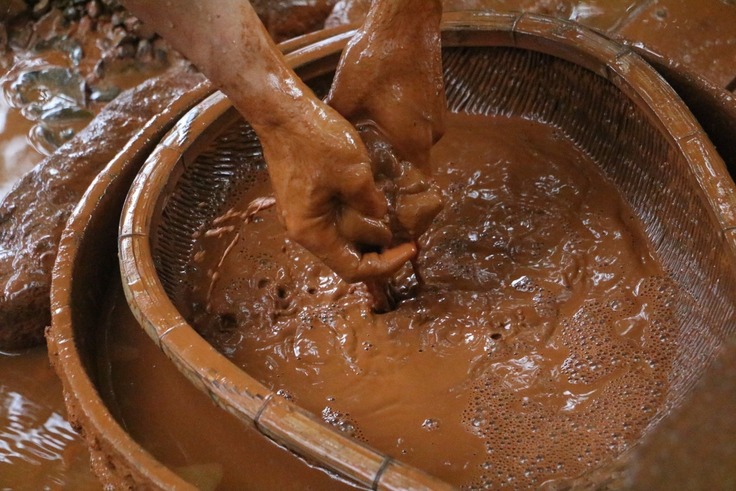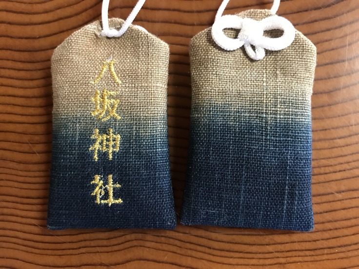 ●お守りは、八坂神社境内から湧き出した鉱泉による宍喰祇園染めで作っています。