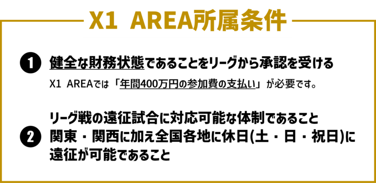 資金使途:X1 AREAへの参加/昇格資金 及び チーム運営費