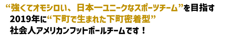 私たち下町ゴリラズは「アメフトと真摯に向き合っている選手達が報われ、応援してくれる方々とスポーツの醍醐味を感じていけるチームを作りたい 」という想いのもと、2019年に結成されたチームです。