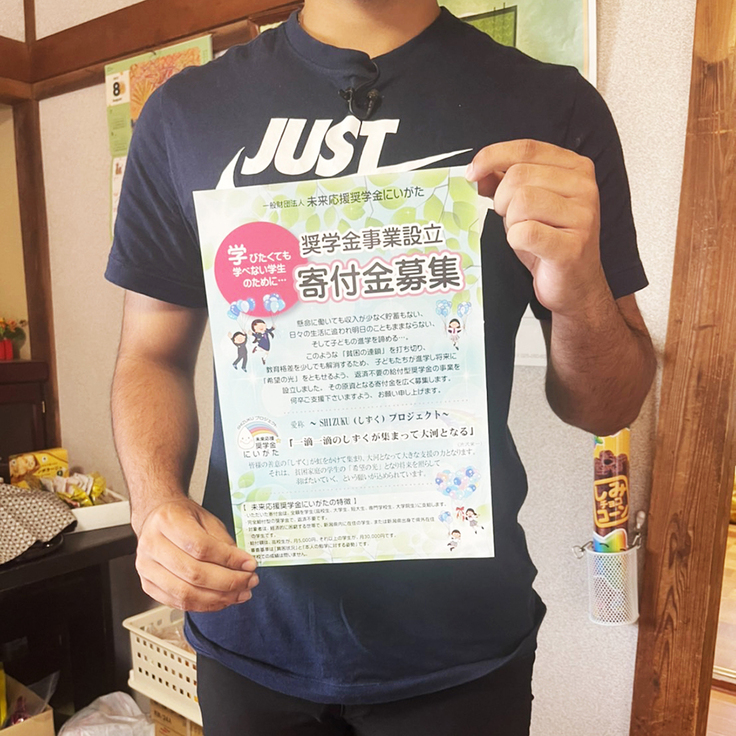 一人でも多くの学生を支援するため、皆様に支えていただきながら、「SHIZUKU(しずく)プロジェクト」と銘打ち、奨学金の事業を始めます。