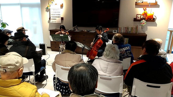 今日は弦楽2重奏でのまちかどコンサートを開催しました。