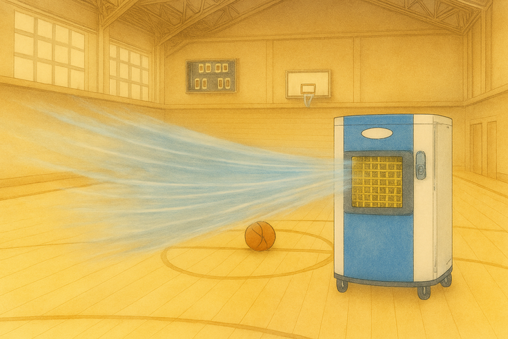 体育館は夏場になると室温が大きく上昇し、実習をはじめとする授業や運動部の活動、イベントの安全性が脅かされています。