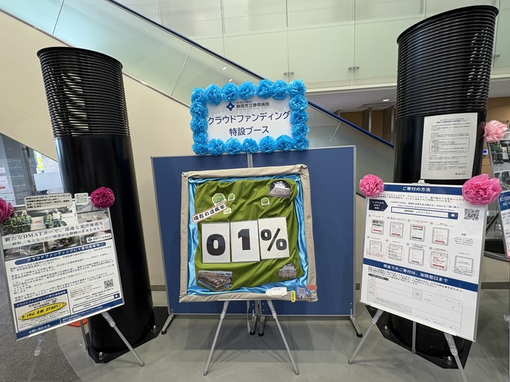 当院の1階正面玄関にクラウドファンディング特設ブースを設置しています。