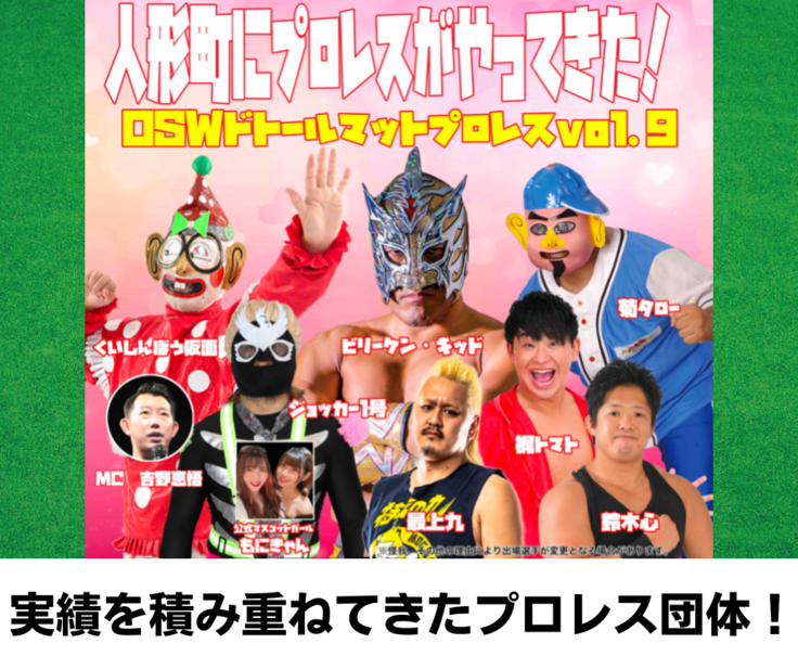 “笑顔と元気を届ける”をモットーに活動しているプロレス団体『OSW・スタイル・レスリング』と協力し、出張イベントを実施させていただきます。