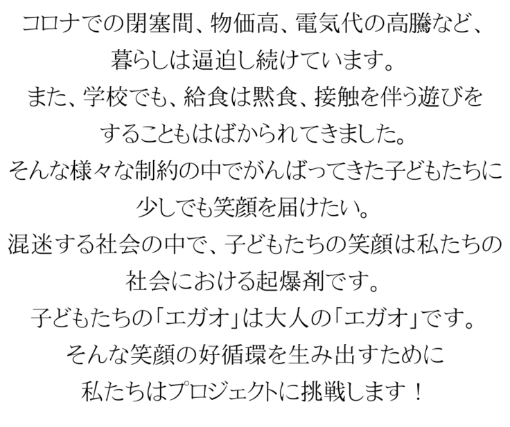 “コロナでなかなか思うようにいかない学校生活を送った子どもたちに進級前に少しでもエガオを届けたい!”