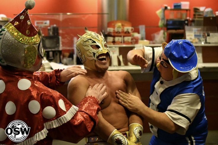 そして、この想いを実現するために『プロレス』と『お笑い』を融合させた新しいエンターテイメントを提供しいているプロレス団体『OSW・スタイル・レスリング』と連携し、“出張プロレスイベント”を実施致します。
