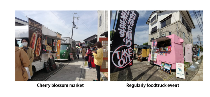 Every year, during the cherry blossom season in spring, we hold a "Handmade-Market" at this place. At the time when the coronavirus was spread in the world, the commercially available masks disappeared from the world, and cloth masks were produced and sold at the market, but even after the event was over, more and more customers came to buy cloth masks. In search of masks that are out of stock every day, I finally received requests such as "I want you to make a mask with this cloth," and while I was responding, I noticed that the office had become a hand-made store. At the same time, I knew the food truck owners were looking for a place to open a store because all the planned events had been canceled. I also knew that many people are opening food trucks because they can no longer operate at restaurants. Even though there is no place to sell...So I tried to invite them to our place. More locals visited than I expected, and I had the opportunity to talk with many locals. Thanks to that, I can meet people who do business in Ide Town and locals who want to liven up Ide Town. I was also able to see the sight of the exchange between locals that I hadn't met in this place for a long time. From these experiences, I feel that this place has great potential.