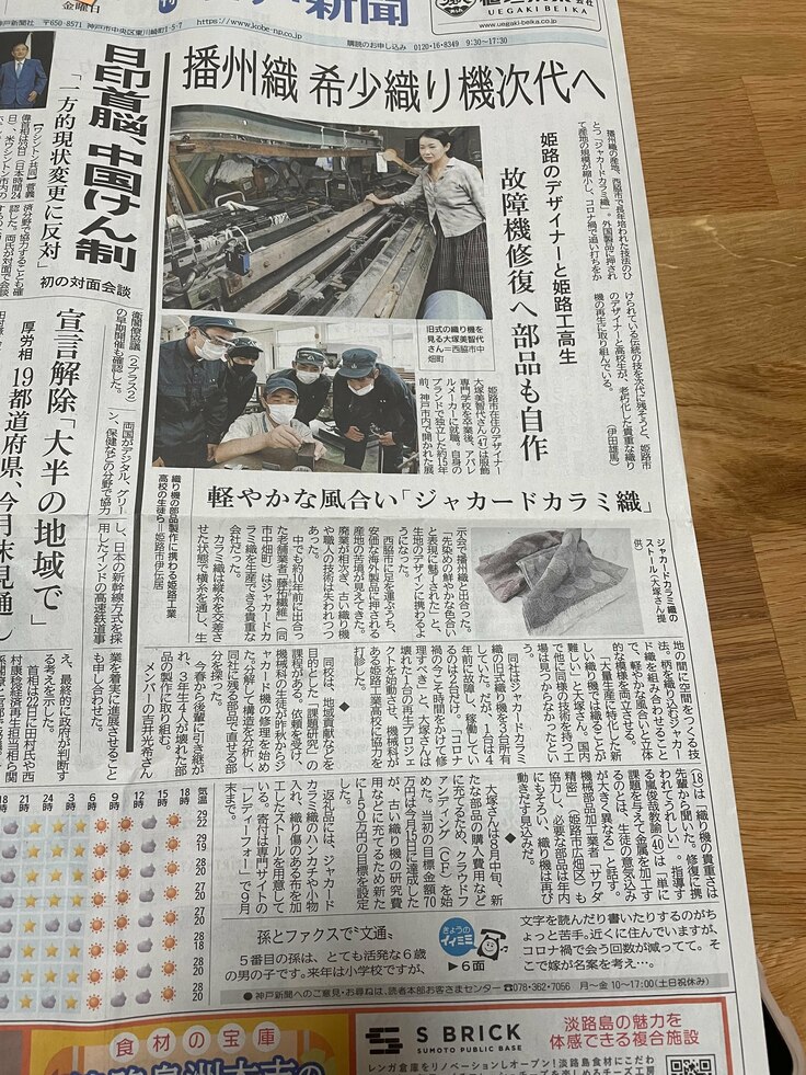 播州織産地の北播エリアの方では夕刊が発行されておらず、北播版には週明けに改めて掲載となるそうです。どうぞよろしくお願いいたします。
