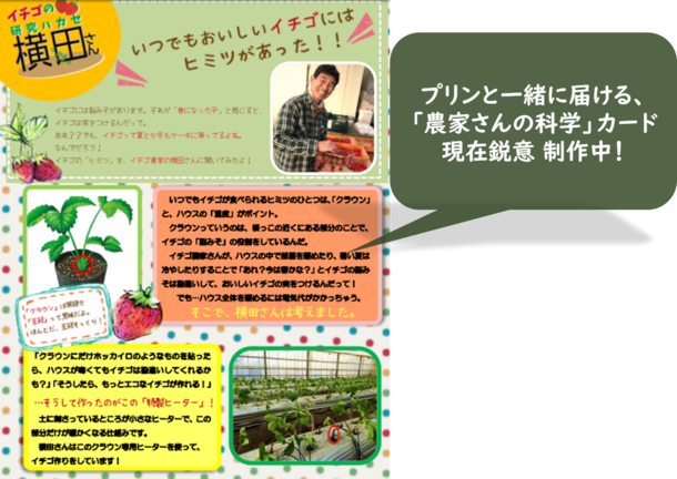 いちごプリンをきっかけに、子供たちに農業や化学、あるいは千葉の名産といった地理に興味を持ってもらえたらな!と考えています。