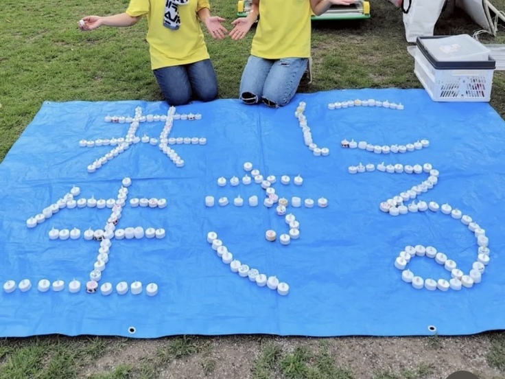 以前は辻堂駅前などでキャンドルナイトをやったこともあるのですが、今回もキャンドルで文字をつづり。