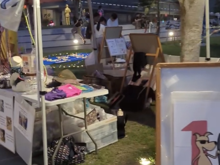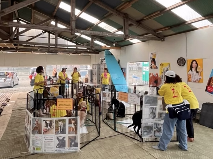 こちらは今年初めてのチャレンジ、海の家での譲渡会。茅ヶ崎の海岸では昔から有名な石田屋さん。この季節は、5時を過ぎると、犬を連れて砂浜に入ってくることができます。