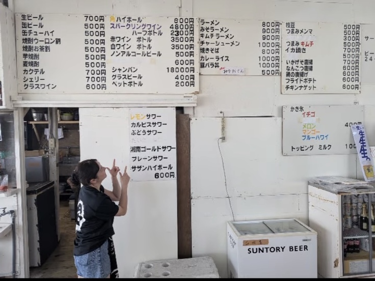 サーフボードも、ビールのポスターもいい感じ。さらに、美味しいご飯も注文できる。