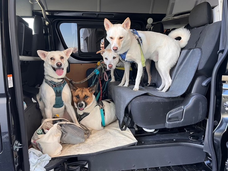 運転席と助手席の間のクッションシートも快適で、小型犬が待機時にそこでくつろぐ姿もよく見られます。