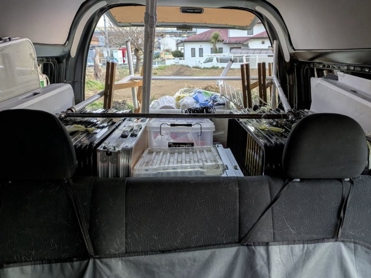 荷物の積み込みに十分な高さは確保できましたので、広さに合わせた積み方を研究しています。毎回新しいアイディアを持ち寄って、より良いスタイルになっている最中です。