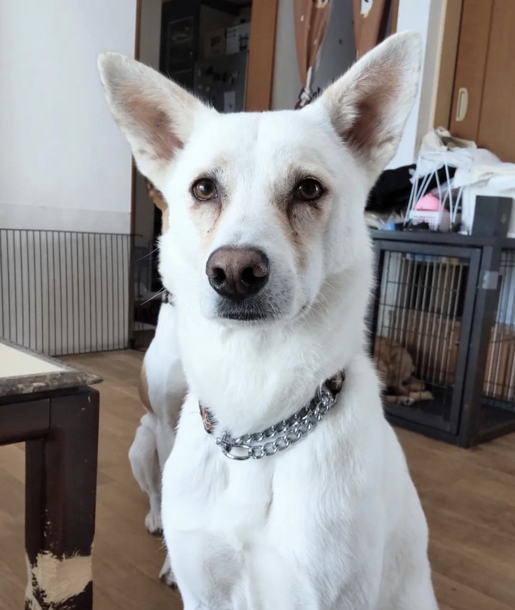 でも心之助は実は甘えん坊で食いしん坊で、お散歩もお出かけも大好き。フライングで玄関に飛び出してみたり、キッチン前で目力すごい顔で座ってたり、他の犬に紛れてボランティアに近づいたり。おやつをかすめに来て、怒られることも。