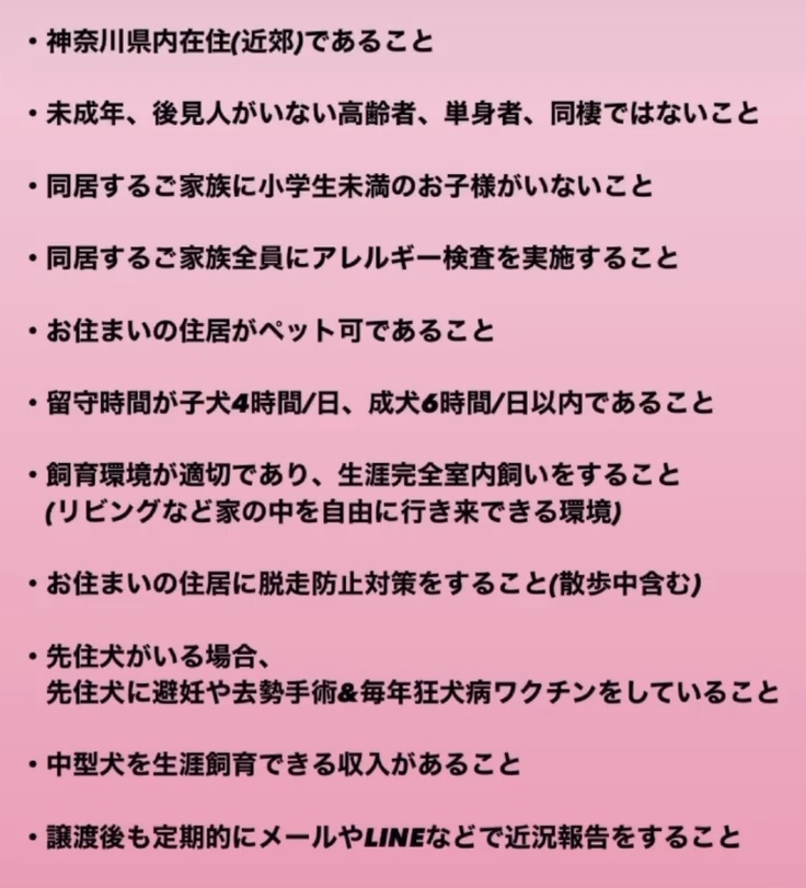 これが、よくご意見をいただく「保護団体から動物を譲渡される時の条件って、こんなに厳しいとは思わなかった」と言われるものです。