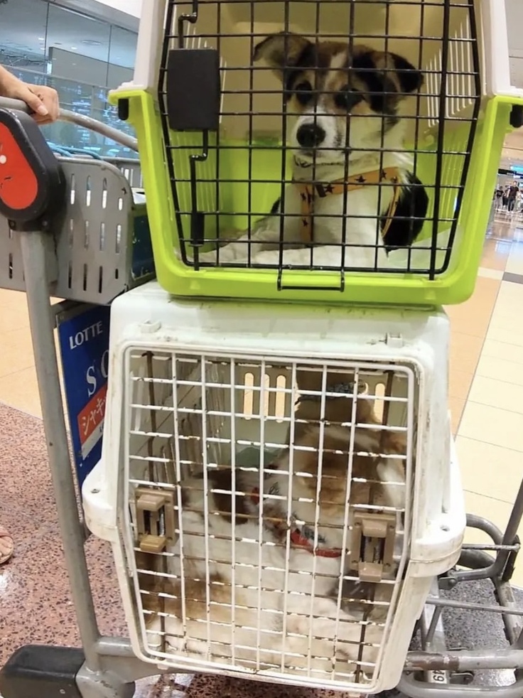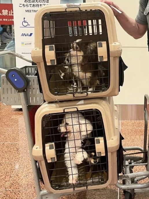 搬送ボランティアの手荷物扱いのこともあれば、犬だけで来る貨物扱いのこともあります。どうしても慣れない周囲の音や人に驚いてしまいます。振動や匂い、空調なども疲労につながるのでしょう。