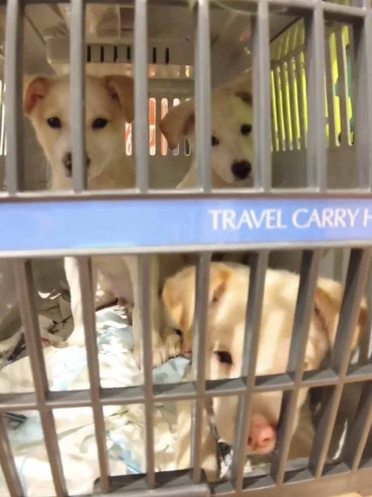 空港へのお迎えは、普段のお世話よりも少しリアルにレスキューの現場の雰囲気を残していて、この子達の幸せへの一歩目に関われたような特別な思いをもちます。ここから環境に慣れてもらう日々が始まります。