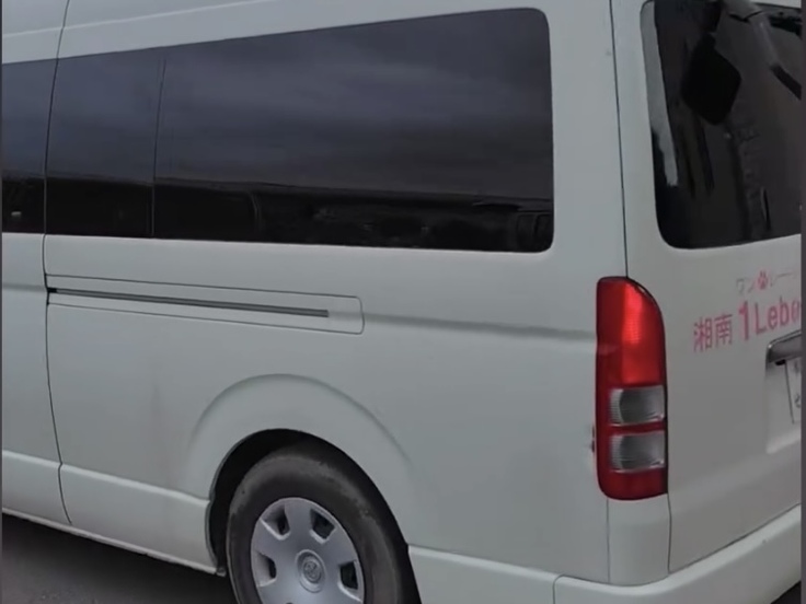 湘南ワンレーベンの初代大型車両は、白色のトヨタハイエースのワイドロングサイズです。