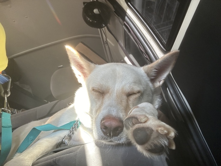 目的地について設営をする時も冷房を切れないのですが、陽当たりなどによっては犬達の息遣いが心配になり、水を飲ませたりうちわであおいだり(顔の近くでバタバタされるの、犬は嫌います)。
