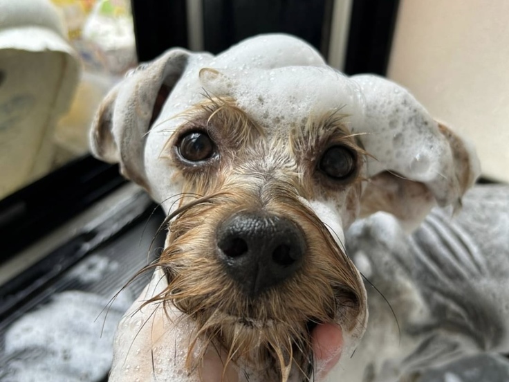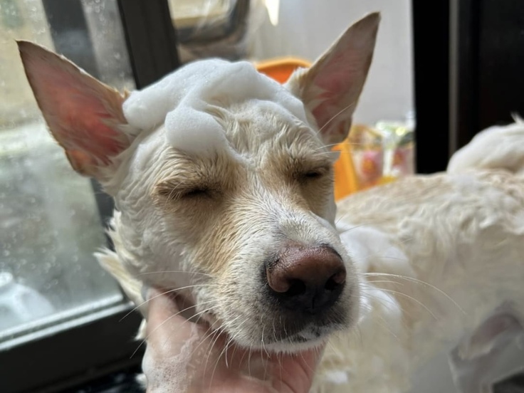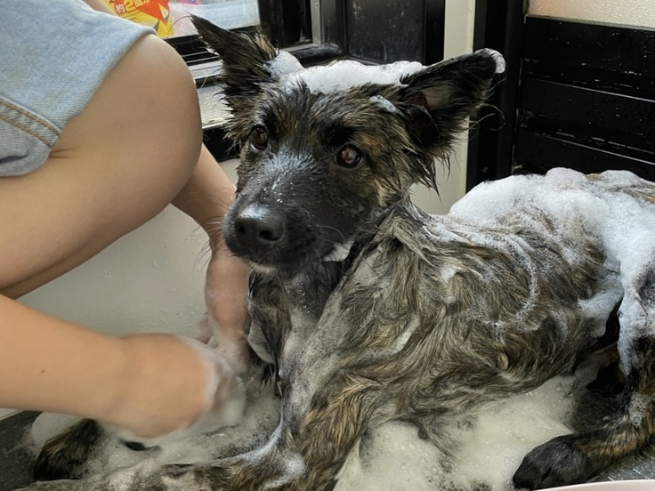 保護されてすぐのバスタイムでは、眠ってしまう子もいますが、疲れ果てているのか拒否する子はあまりいなくて、ノミ取りなどに長い時間がかかっても快適になるのか、協力的な子が多いです。