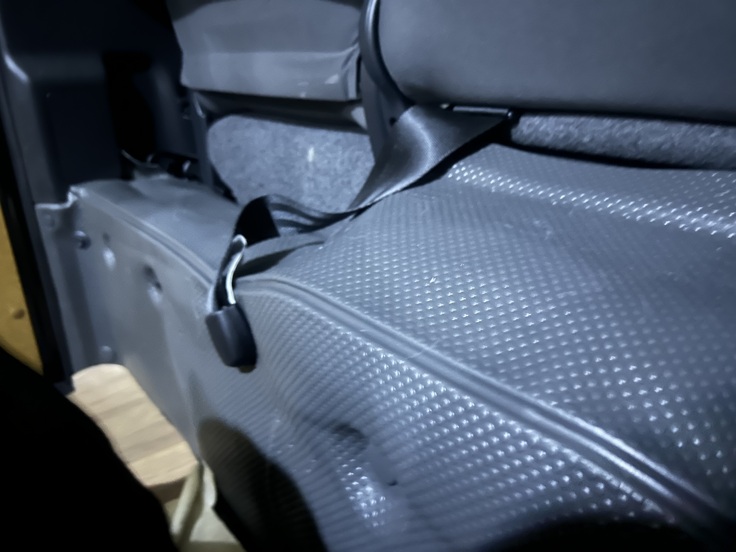一般的な後部座席の取り付けでは、足元に犬が座ることができないため、床と座席を剥がして後方に座席をつけ直し、床を改めて取り付ける改造が必要でした。費用を抑えるためにどうすれば良いか相談すると、初代の座席を外して二代目に取り付け、二代目の座席を初代に取り付けた方が良いとのこと。なんと予想もしなかった展開!後部座席だけは続投する方向で見積もりをしていただきました。