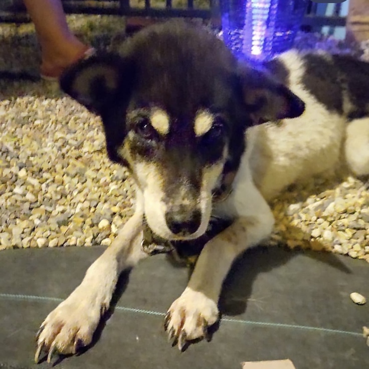 この近くの広場の辺りを歩いているのを見つけた人が、女性に知らせたと。この辺りに保護団体があることを知っていたので相談したくて来たと。リードは女性のお家にあった物で、犬についていたのは首輪だけだと。取り付けて引いてみると、従ってついて来たと。(この方はその後も、ずっとフラのことを気にかけてくださり、ご支援してくださいました。ありがとうございます)