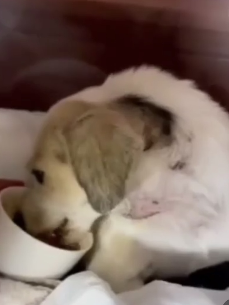 でも、とにかく栄養をとらせなければ生命がつながらない。嫌がりもしないでされるがままにしている、生きることを諦めたようなサンに謝罪するように、シリンジで水や食べ物を口内にねじ込みました。お願いだから食べて、という気持ちでしたが口もあまり動きません。口元からだらりとこぼれる物を拭きとり、涙をこらえながら続けます。