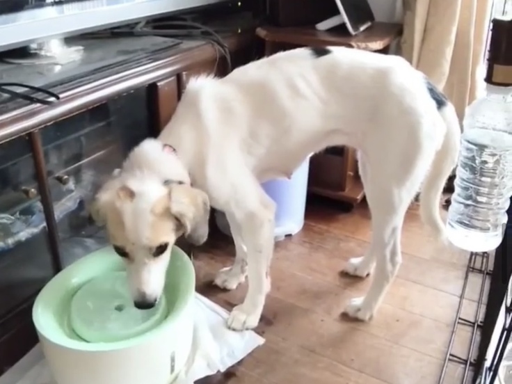 立ち上がり、自分で水飲み器に近づいていくと、その身体の細さに改めて言葉を失います。