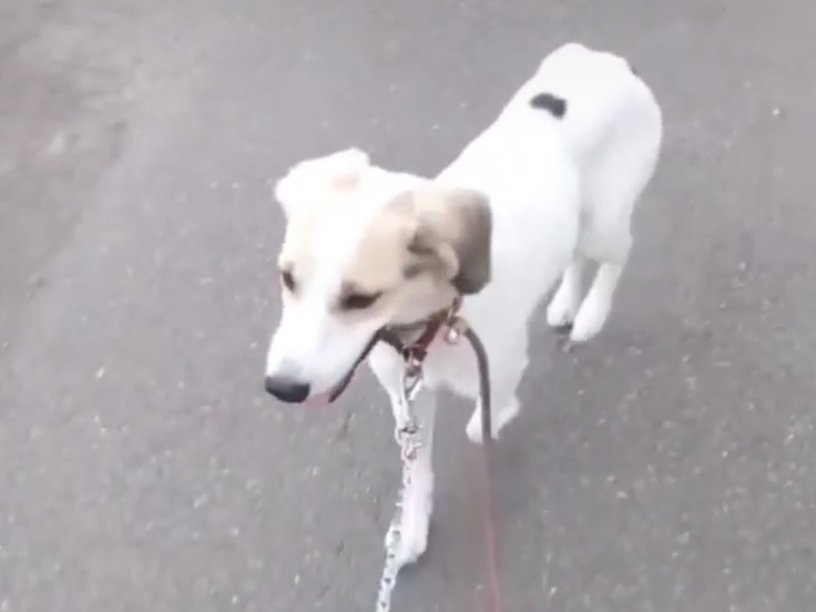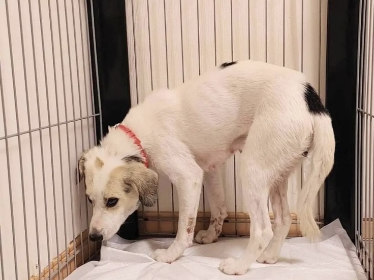 全身が骨と皮、ガリガリに痩せた状態。初めてのお風呂や夜は、繰り返し意識があるのか、息が絶えていないか、確認を続けました。全身の大量だったノミダニを除去してもだらりと横になり、頭を壁に預けて上げています。以前に出産をしているようです。その子どもたちはどうなったのか、誰にもわかりません。