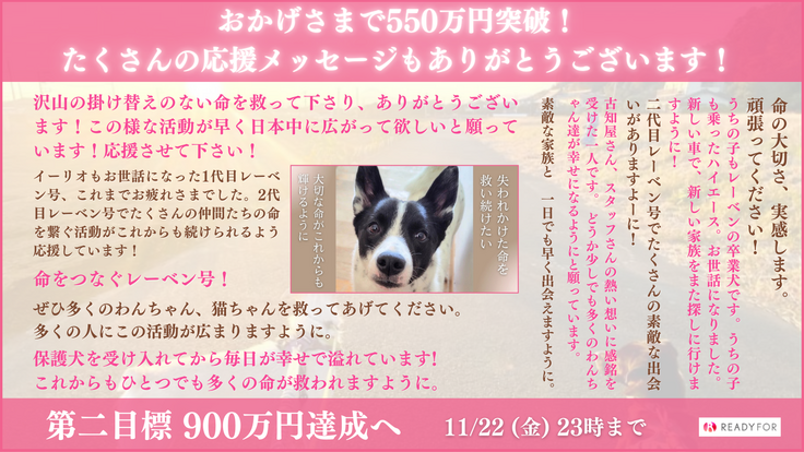 【550万円突破!】皆様の熱い応援メッセージに日々励まされています!残り2週間駆け抜けてまいります!