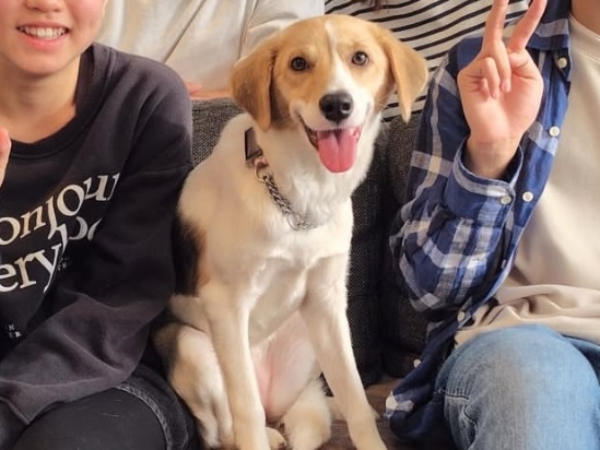 同じ奄美大島から保護された、つなとは時期違いの姉妹卒業犬オレオのお家で、家庭生活やルールを学びながら家族のお迎えを待ちました。