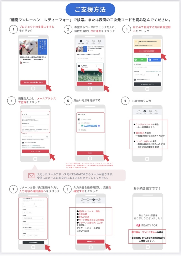 ※ご入金が確認でき次第、代理でクラウドファンディングの決済手続きをさせていただきます。