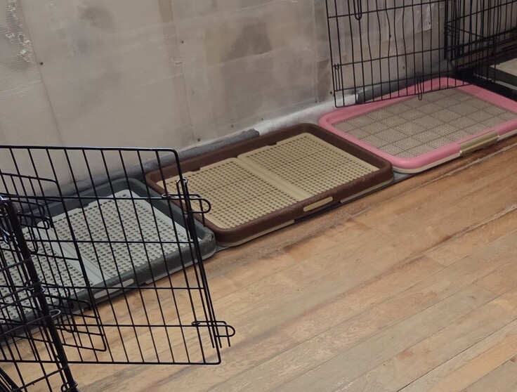 トイレトレー、2階だけで5個も置いてます。排泄物で汚れていて拭くだけでは取れないので毎日洗ってます。まだまだトイレで排泄することを覚えていく子犬の時期ですから、失敗も多い。
