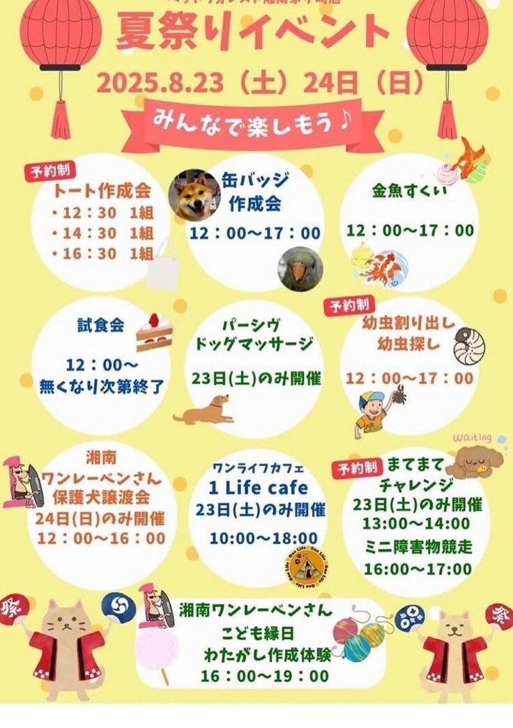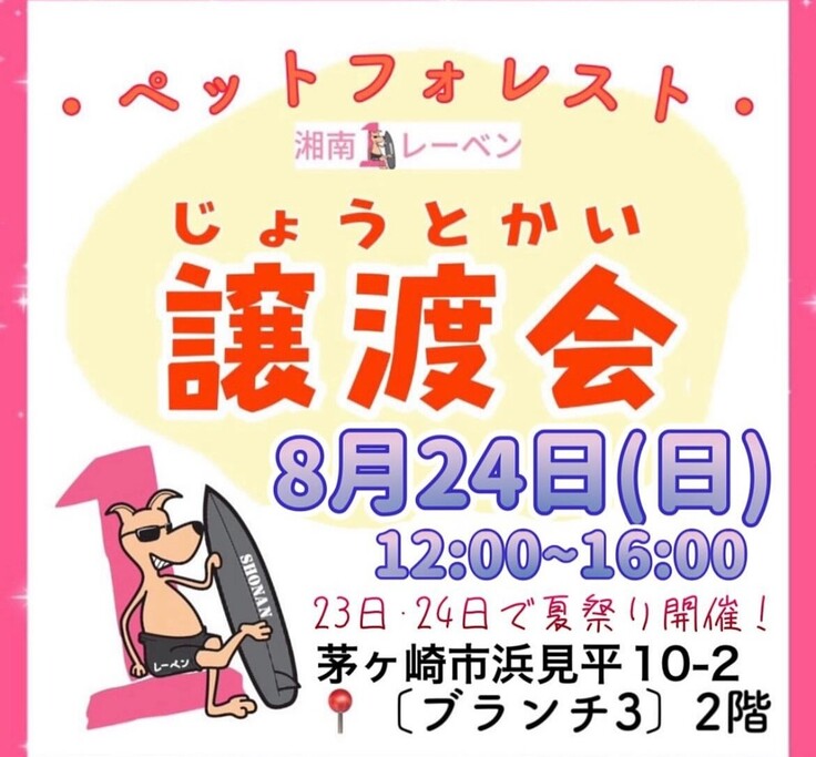 いつも譲渡会を行なってるペットフォレスト茅ヶ崎店の入っている「BRANCH 」さんでの夏祭りイベントに参加します!