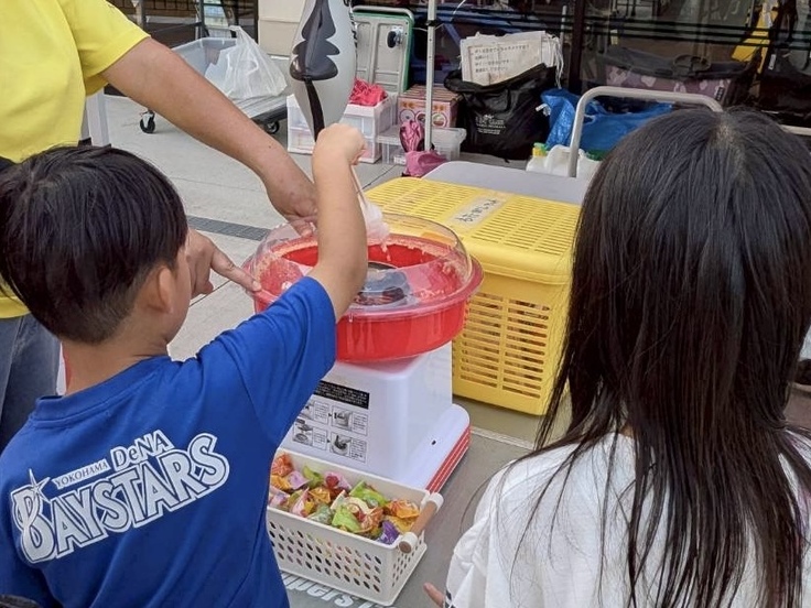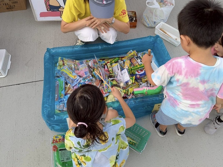 土日は、ペットフォレストがある茅ヶ崎市の商業施設で縁日と譲渡会をしました。まだまだとても暑かったので、人通りが果たして多いのかはわかりませんが、いろんな子どもさんが綿あめ体験やお菓子つり、的当てなどに来てくれて、微笑ましい場面がありました。活動資金集めも大切ですが、地域のイベントを盛り上げることも意義があると思います。