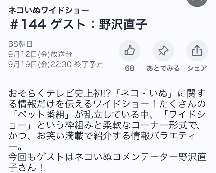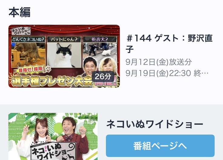 9月12日(金)の夜10時から、BS ASAHIの動物バラエティ番組が放送されました。