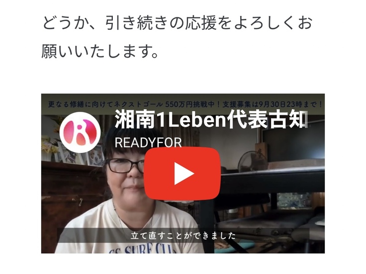 湘南1Leben代表 古知屋友里より動画でのメッセージ公開