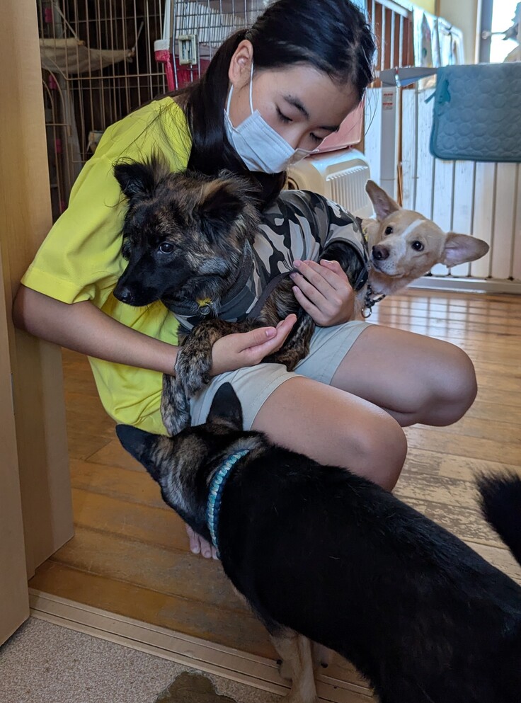 小学生でもできることはあります。犬のトイレ掃除、レーベンハウスの掃除、床や壁の消毒、お散歩(大人と一緒に)などは、こどもでもできる、日々必要となる活動です。