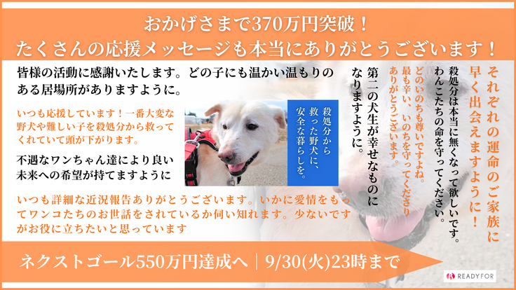 多くの心温まる応援に励まされ、ここまで来ることができました。 残りの期間も、一頭でも多くの命を未来へ繋ぐため、全力で走り抜きます。